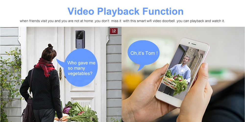 when friends visit you and you are not at home ,you don't miss it with this smart wifi video doorbell .you can playback and watch it.