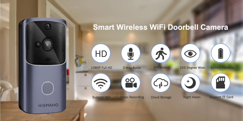 HISMAHO WIFI Doorbell Video Door Intercom 720P HD Wireless Smart Home IP Door Bell Camera Security Alarm IR Night Vision