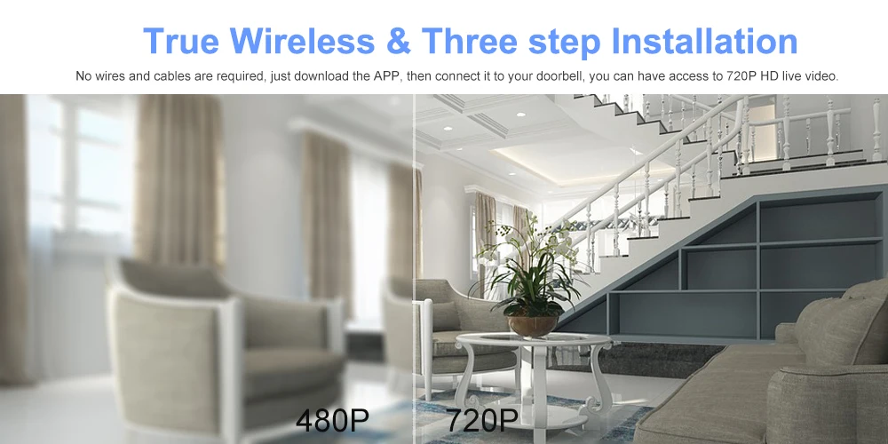 No wires and cables are required, just download the APP, then connect it to your doorbell, you can have access to 720P Full HD live video at any time from your cellphone or tablet.